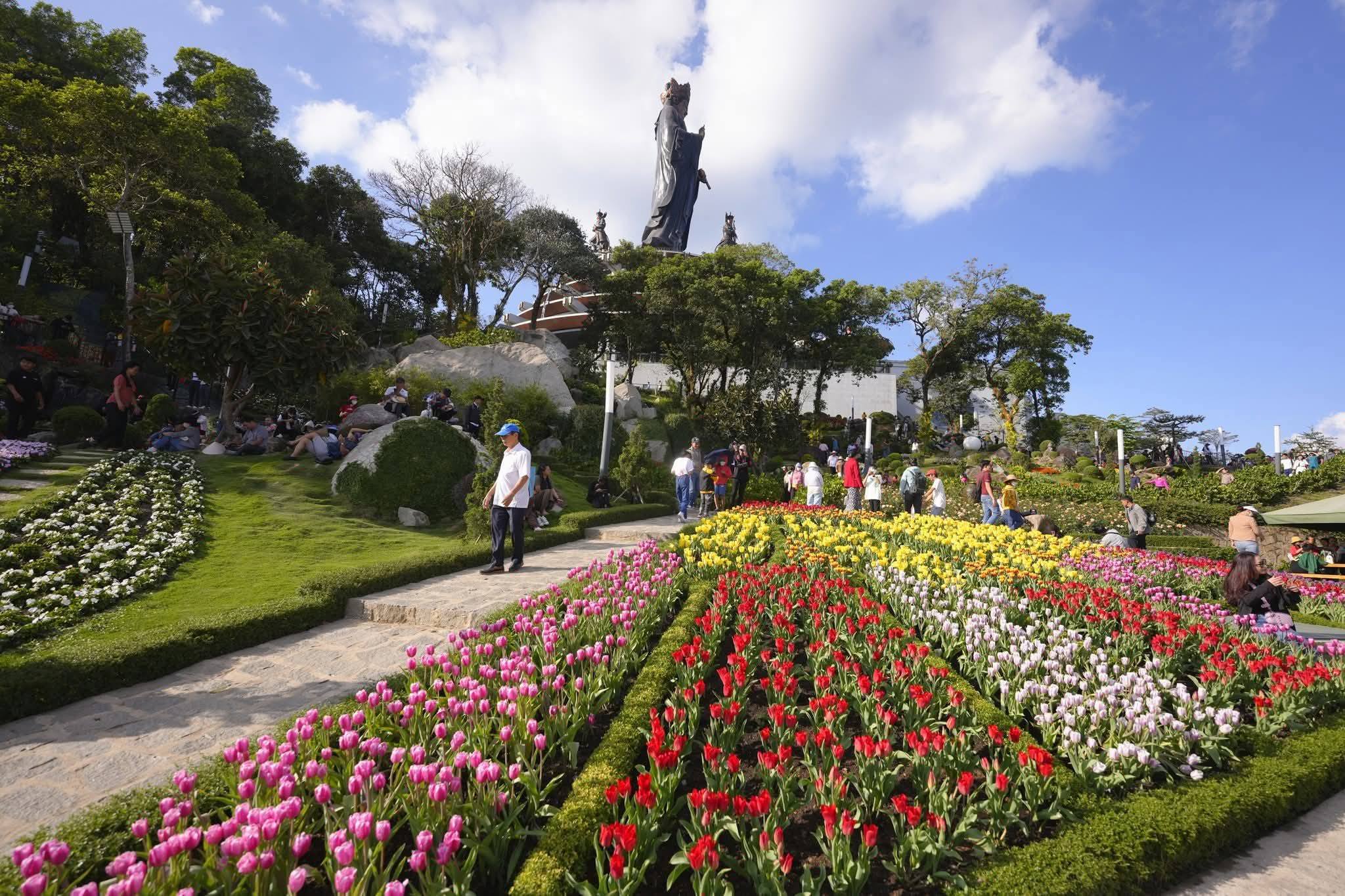 Không cần đi xa, chỉ cần ghé núi Bà là đã có ngay “biển” tulip rực rỡ để sống ảo và tận hưởng mùa xuân theo cách rất riêng.