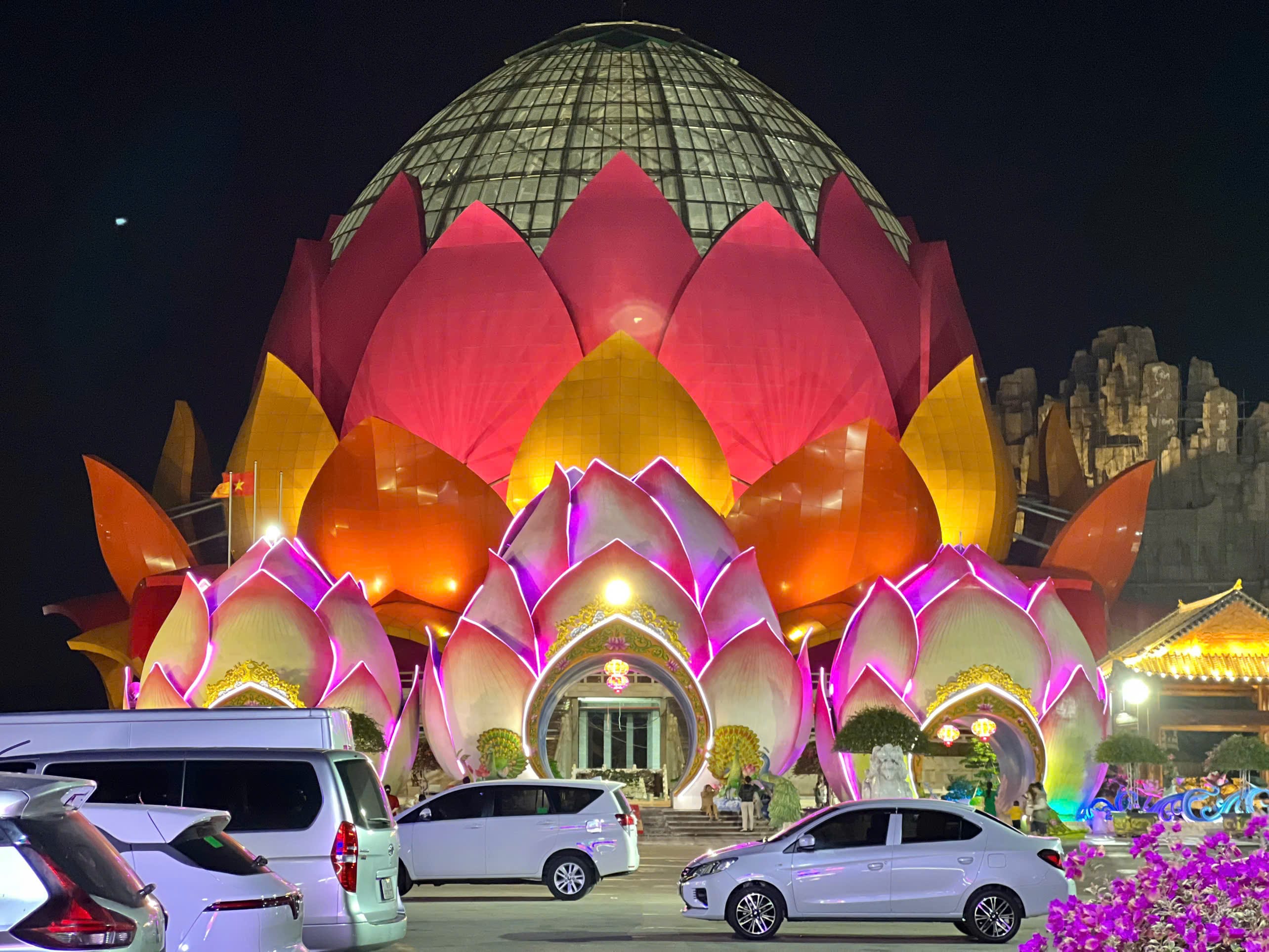 Việc thuê xe riêng giúp bạn chủ động thời gian check-in tại Liên Hoa Bảo Tháp, thoải mái chụp ảnh, tham quan và kết hợp nhiều điểm đến khác trong ngày.
